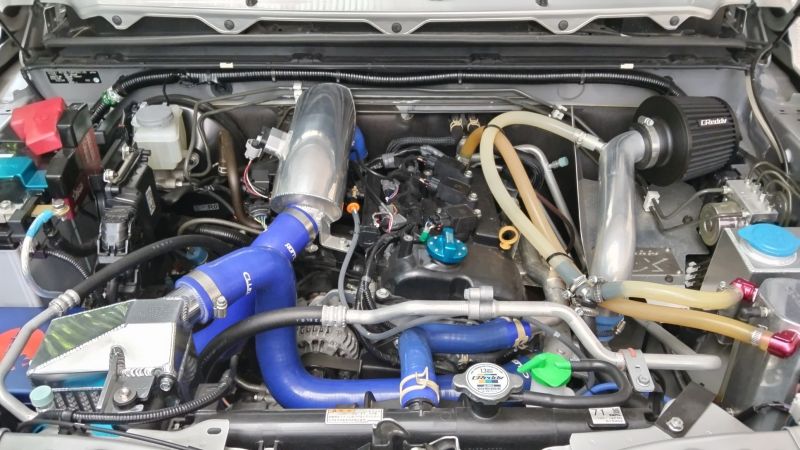 純正の導風板装着可能なので冷却対策も問題なく、吸気効率が大幅に上がっても新型ジムニーのエンジン制御に十分対応できる仕様になっていますので、コンピューターの書き換えも必要ありません。
